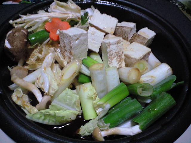 3)煮えたら、順次肉を入れ「しゃぶしゃぶ」しながら溶き卵を絡めて食べる。