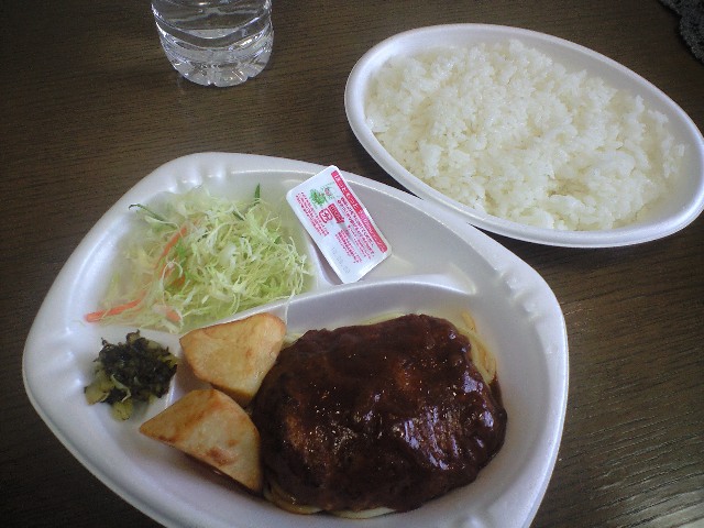 そんな訳で、今朝の朝ご飯はデミハンバーグ弁当。