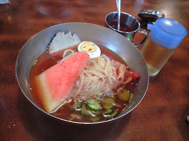 具はオーソドックスに卵、叉焼、キュウリ、カクテキ、スイカ。