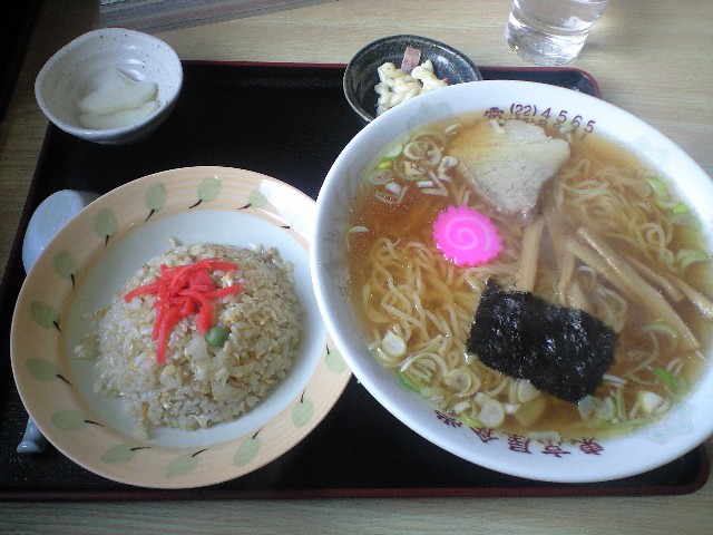 2分ほど迷って、結局無難な「半チャーハンセット」を注文。
