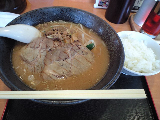チャーシューが見えなかったのだが、網目から察するに。。。