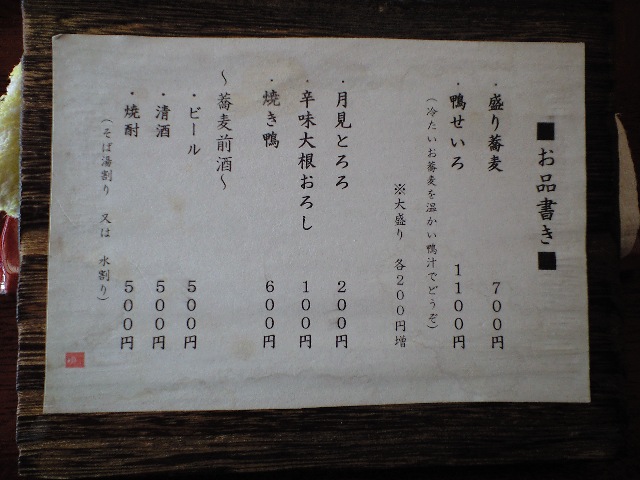 そんな訳で盛り蕎麦(大盛り)と、焼き鴨を注文。