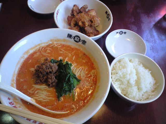 「坦々麺、ライス、鶏の唐揚げ」を注文。