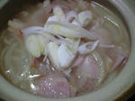 3)「あく」を丁寧に取り除き、全ての具材に火が通ったら、酒粕を大さじ1杯溶かし入れる。