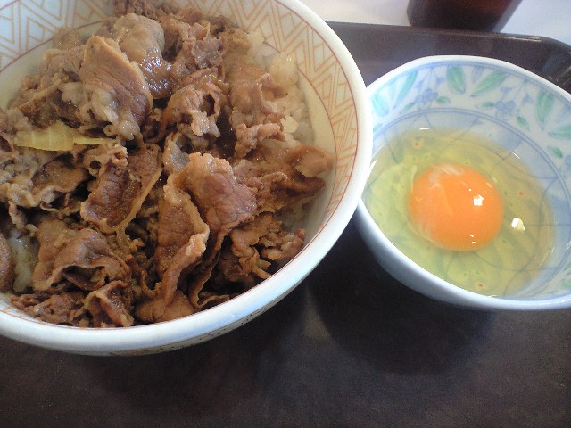 「牛丼(並)、生卵」を注文。