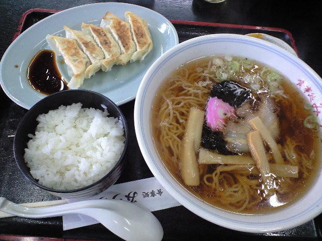 ラーメン、ライス、餃子のセットだ。