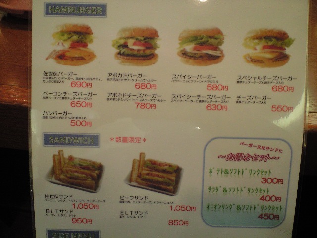 アボガドバーガーや、サンドイッチ類にも興味をそそられる。