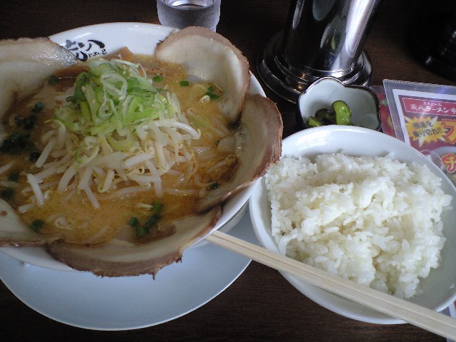 カウンターに座り、早速「白味噌チャーシュー麺、ライス」を注文する。