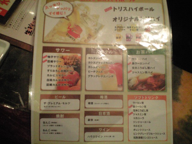 飲み放題は2名がソフトドリンク、おれがアルコール。