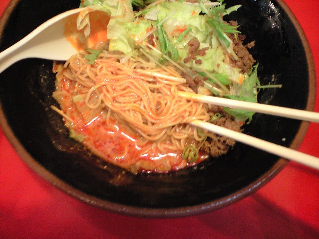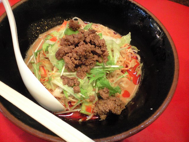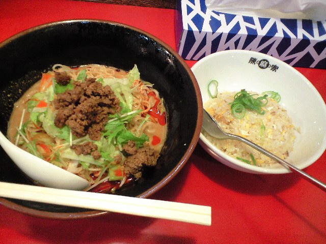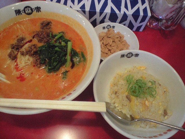 「冷やし坦々麺を2辛で、それに半炒飯」を注文する。