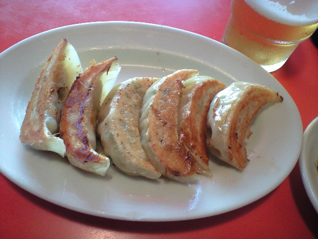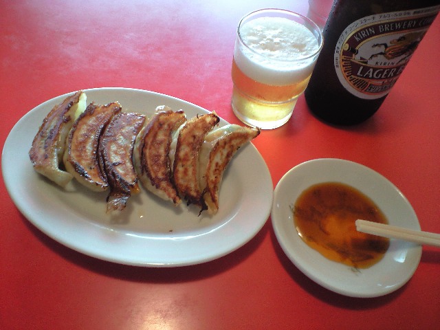 入口に近いテーブルに座り「ビールと餃子」を注文する。