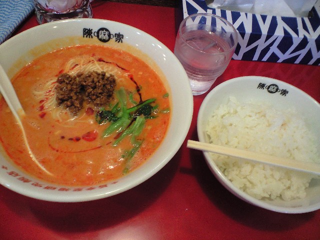 カウンターにて「坦々麺、ライス(大)」を注文。