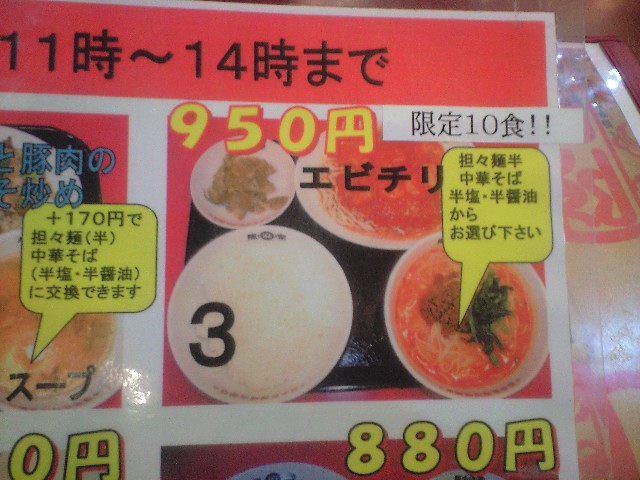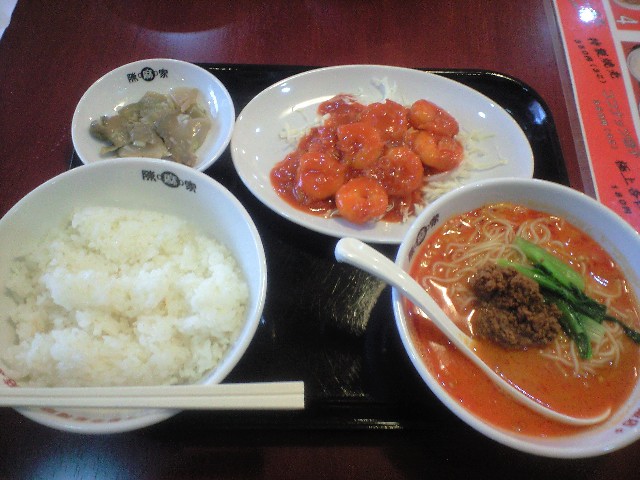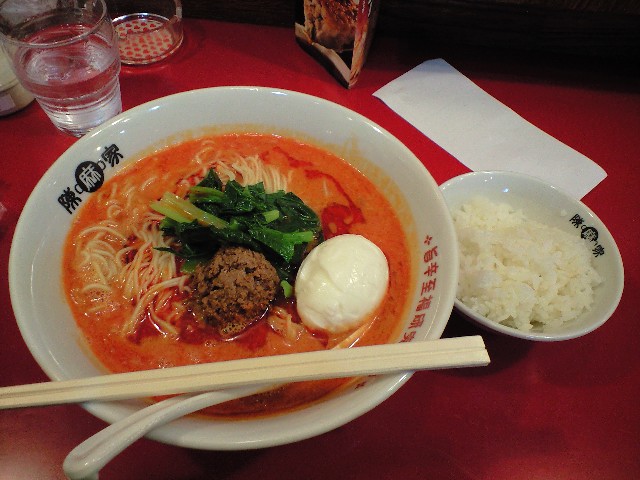 注文したのは坦々麺(大盛り)、プラス1辛、半熟卵、ライス。