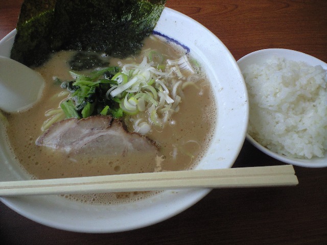 「ラーメン、油少なめ、ライス」を注文する。