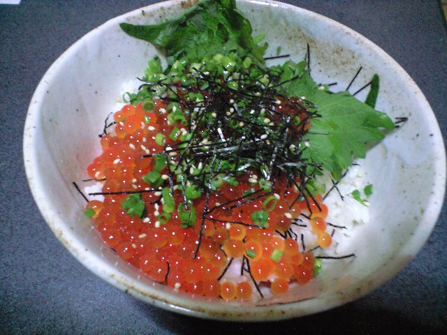 ご飯を炊いて「いくら丼」を作る。