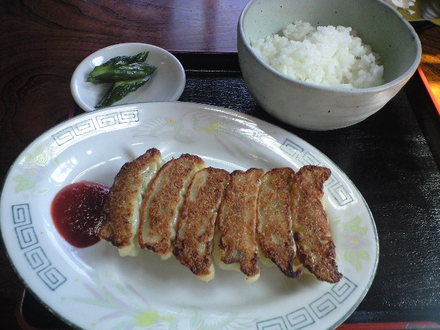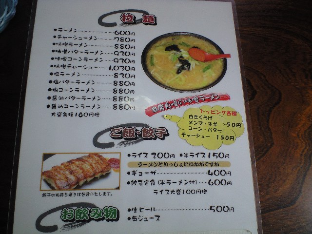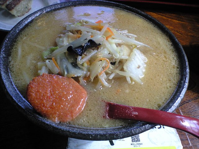 味噌ラーメン、餃子、ライスを注文。