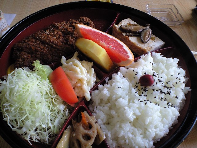 老夫婦が仲良く昼食を食べていたり。