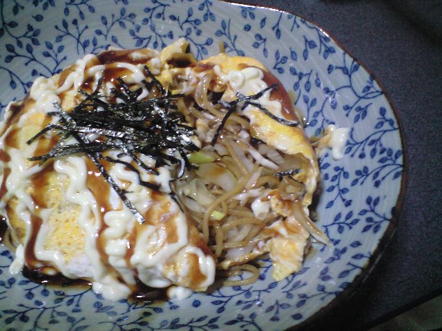 そんな訳で、昨夜はオムそば。