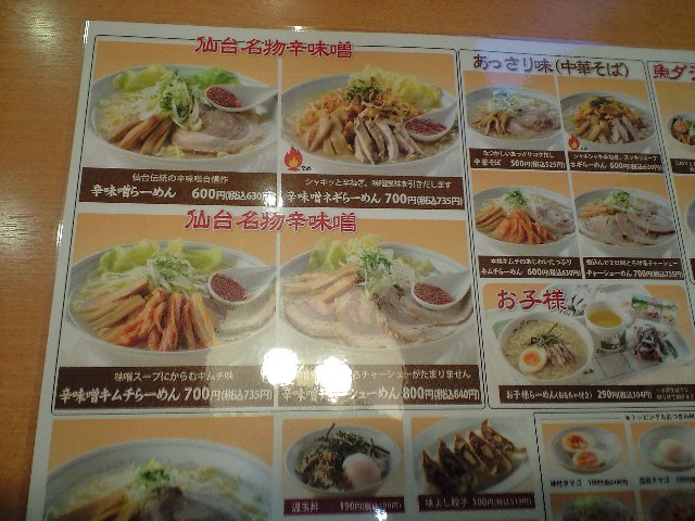 辛味噌らーめん¥780円が、¥600円(税別)まで下がっている。