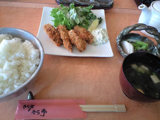 カウンターに座ってカキフライ定食を注文。