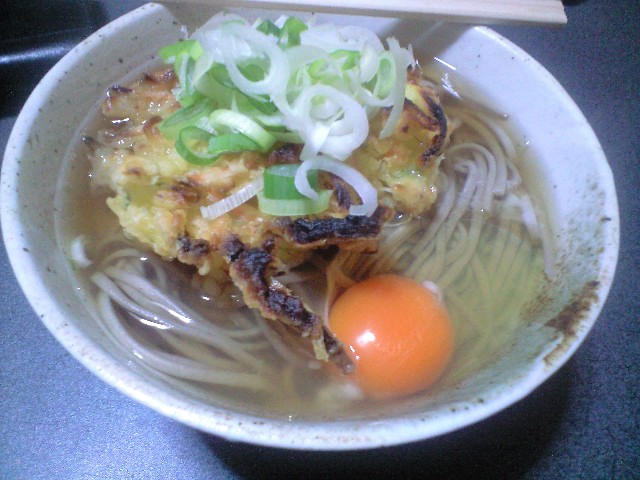 そんな訳で、昨夜の夜食は天ぷらそば。
