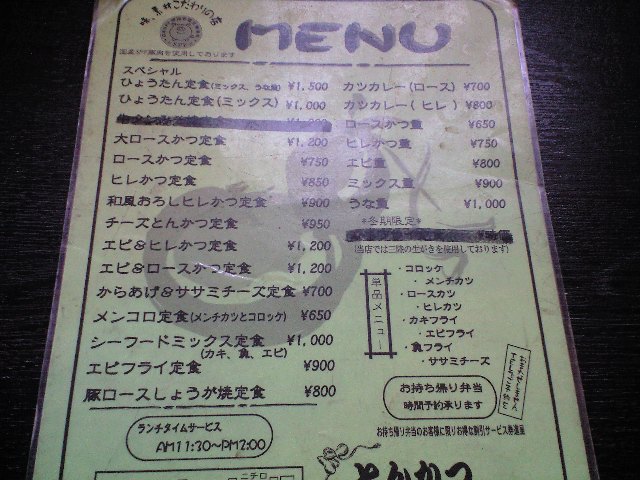 結局『食べ比べ』の意味も含めて、とんかつ定食に落ち付いた。