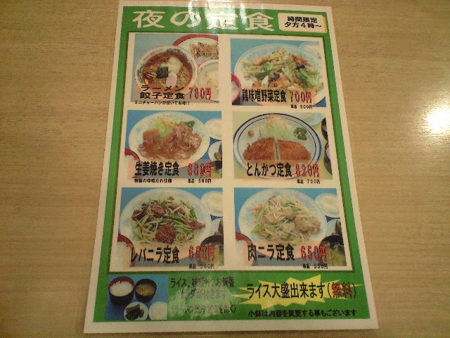 肉にら、生姜焼き、とんかつに、ラーメン餃子&炒飯・・・。