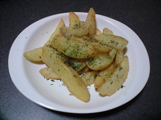 1)多めの油でフライドポテトを中火で、10~11分炒める。